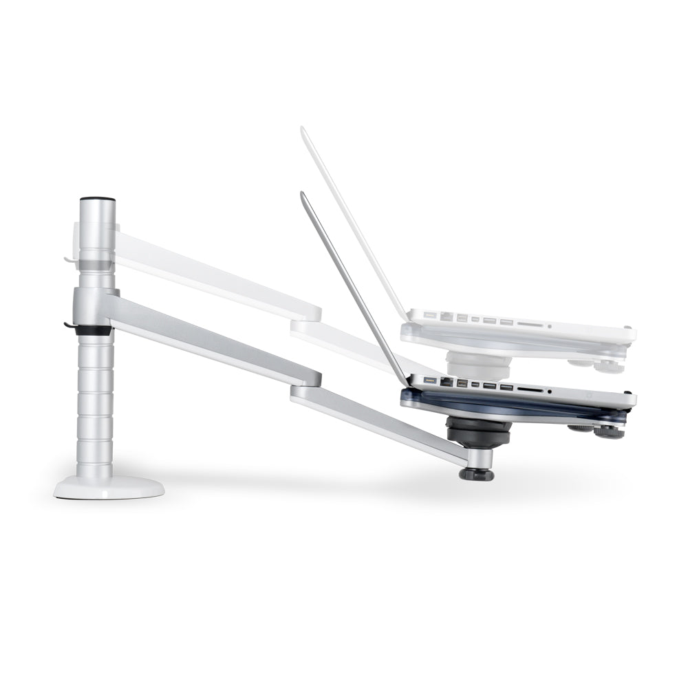 - Adjustable-- The screen can freely swivel 360 degree, and easily adjust the monitor and laptop to the most comfortable position,monitor mounting arm offers 145 degree tilt, the maximum extension length up to 52cm/20.5", reach the height of 43cm/16.9", Laptop mounting arm offers 45 degree tilt, the maximum height up to 42cm/16.5".