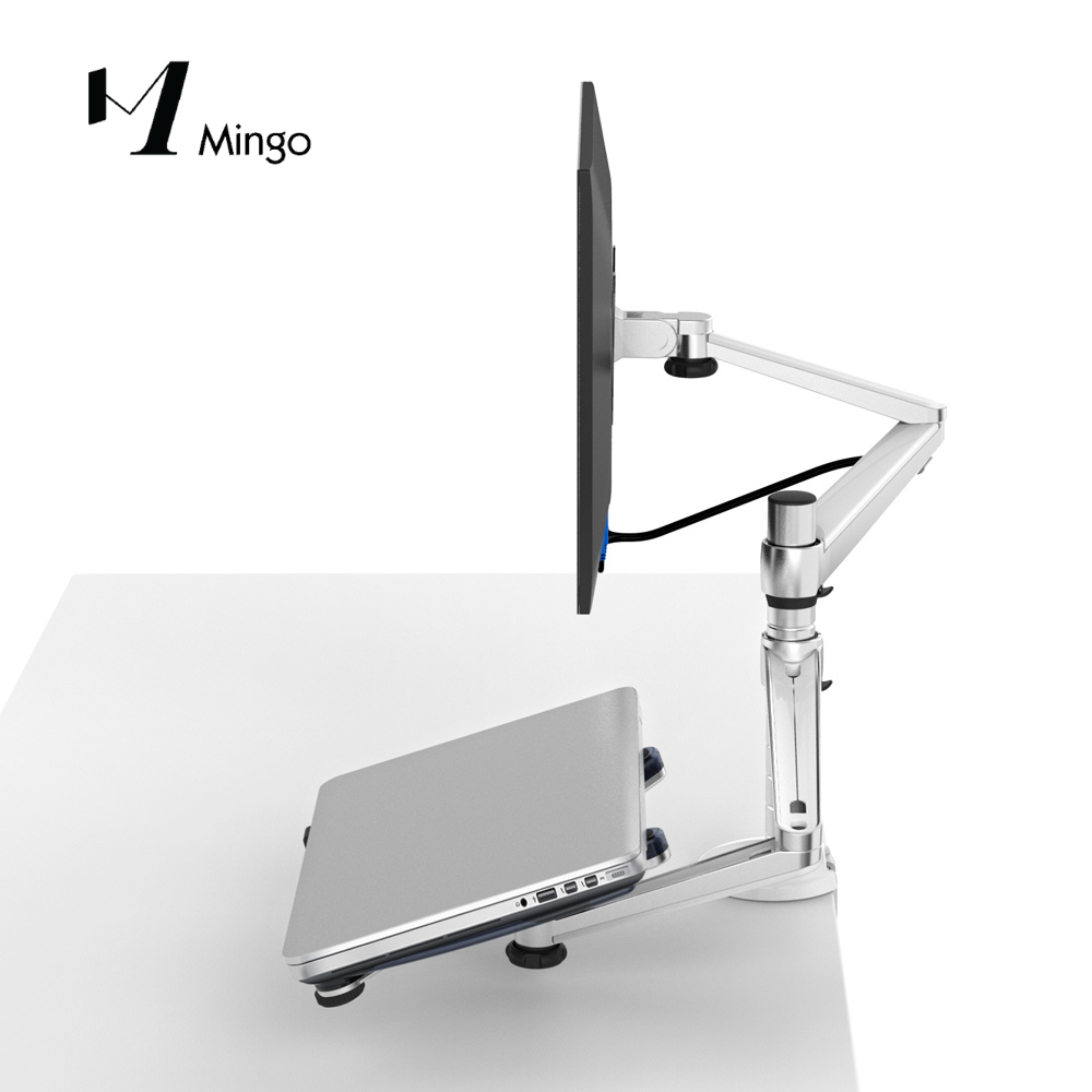 M Mingo OA-7 Monitor and Laptop Mount, 2-in-1 Adjustable Dual Arm Desk Mounts Single Desk Arm Stand/Holder for 17 to 32 Inch LCD Computer Screens